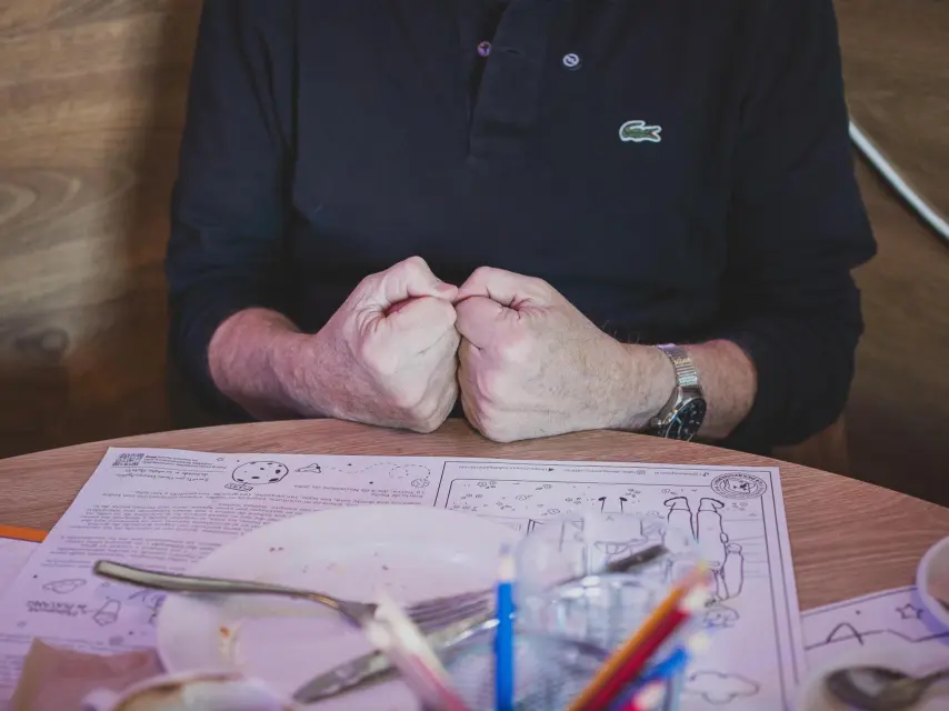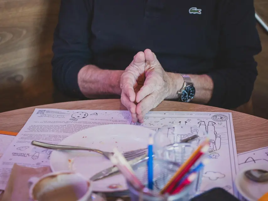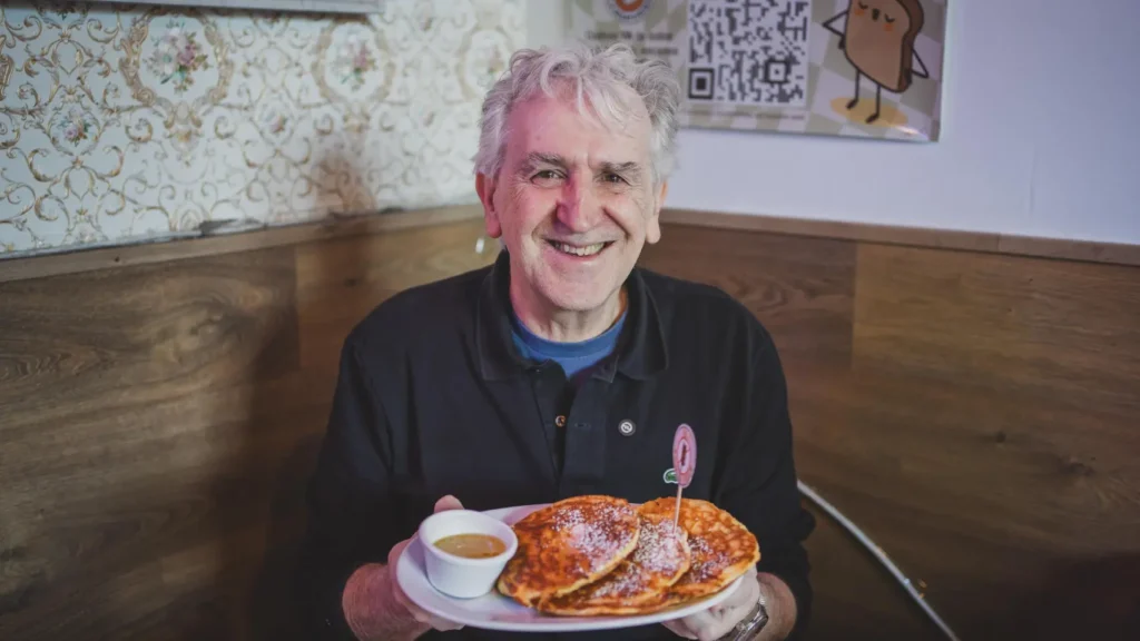 Arsuaga desayunando sus tortitas favoritas y conversando sobre la foto fija de la humanidad: la familia. Sara Fernández.
