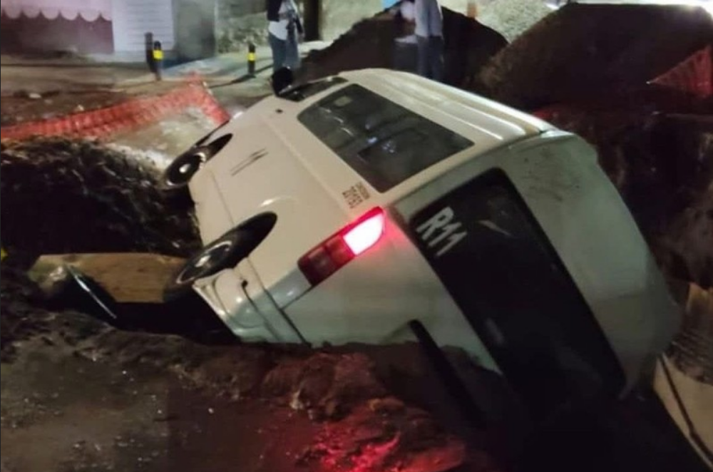 De acuerdo con los primeros reportes, la combi terminó dentro de la excavación tras no advertir la zona en reparación. Afortunadamente, no se reportaron personas lesionadas de gravedad, aunque el incidente provocó daños materiales y la movilización de cuerpos de emergencia.