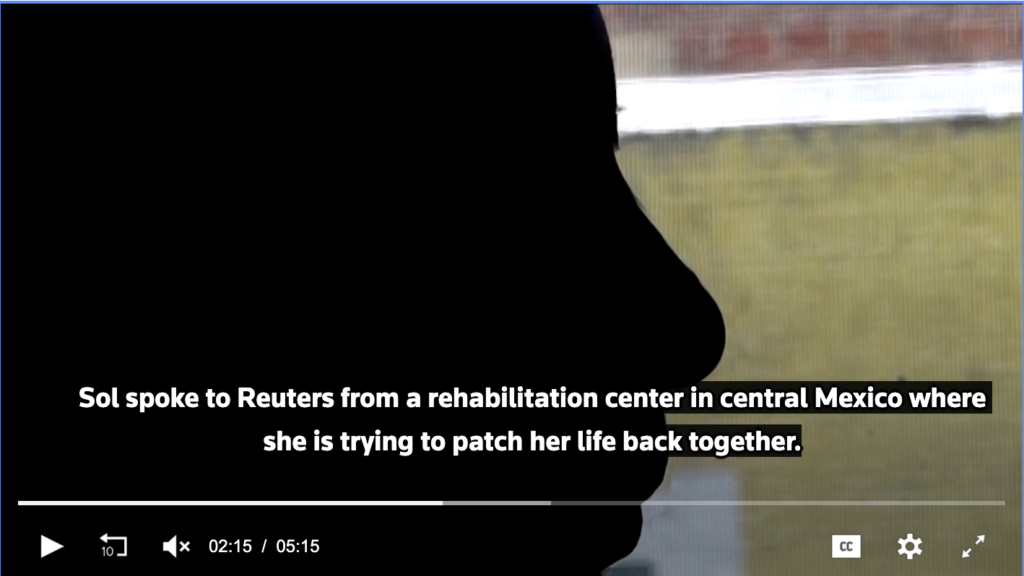 Reuters mantiene en reserva el nombre completo de Sol, así como los nombres de la ciudad donde trabajaba y del cártel al que se unió, para protegerla. La agencia de noticias no pudo verificar de forma independiente los detalles del relato de Sol, aunque los psicólogos del centro y su abogado afirmaron creer que era exacto.