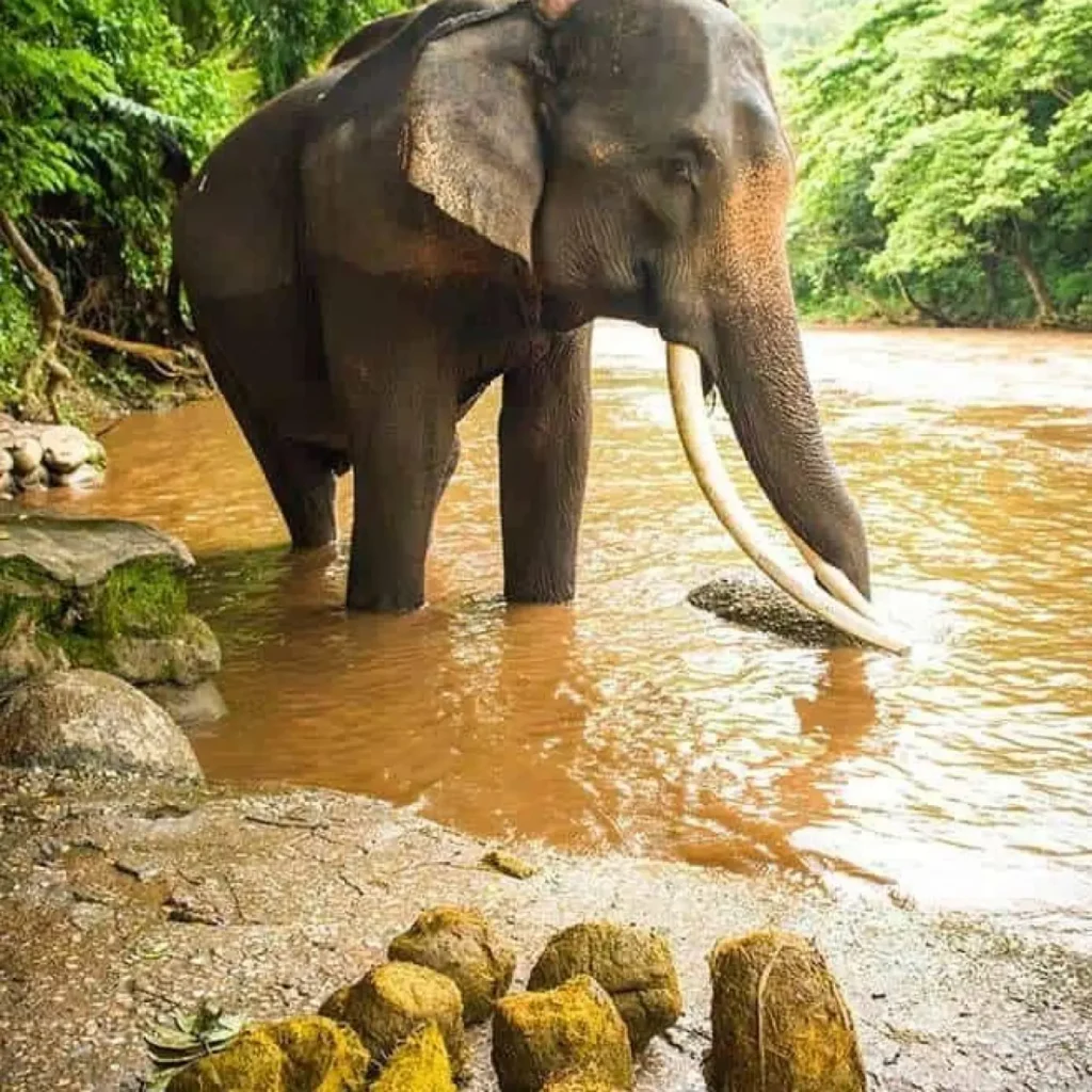 Caca de elefante en uno de los santuarios de Chiang Mai en Tailandia. Elephant EcoValley