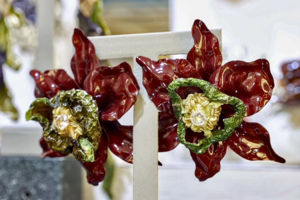 Ha precisado que la hoja de cardo es «muy delicada”, por lo que, para poder transformarla en joyas, ha sido necesario que pase por “muchos tratamientos: primero la deshidratación, después un tratamiento insecticida, porque al final son vegetales; y luego, laca y una resina de secado rápido”.