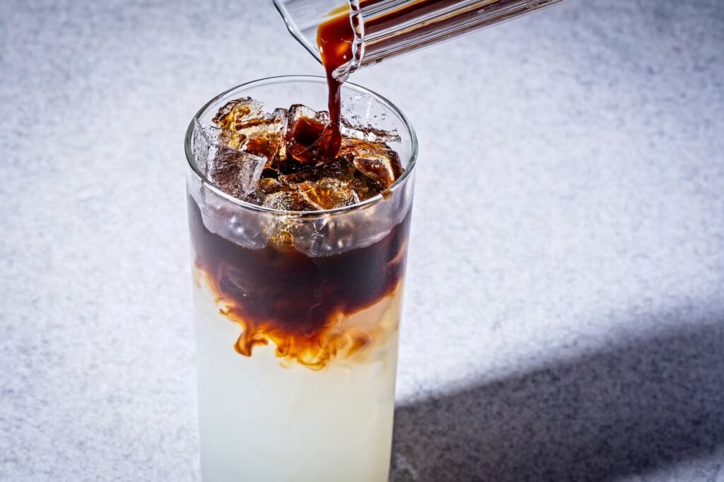 Unos minutos después, el barista me acercó una taza que me recordó a los cafés negros y tostados que pedía en mi bar local. Sobre una limonada de color amarillo pálido había una capa de espresso, un café oscuro como la tinta. Revolví los dos, siguiendo las instrucciones del barista, y di un sorbo tentativamente.