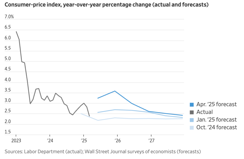 Desde que el presidente Trump asumió el cargo, los economistas han recortado drásticamente las estimaciones de crecimiento, mientras que las han aumentado para la inflación y el desempleo.