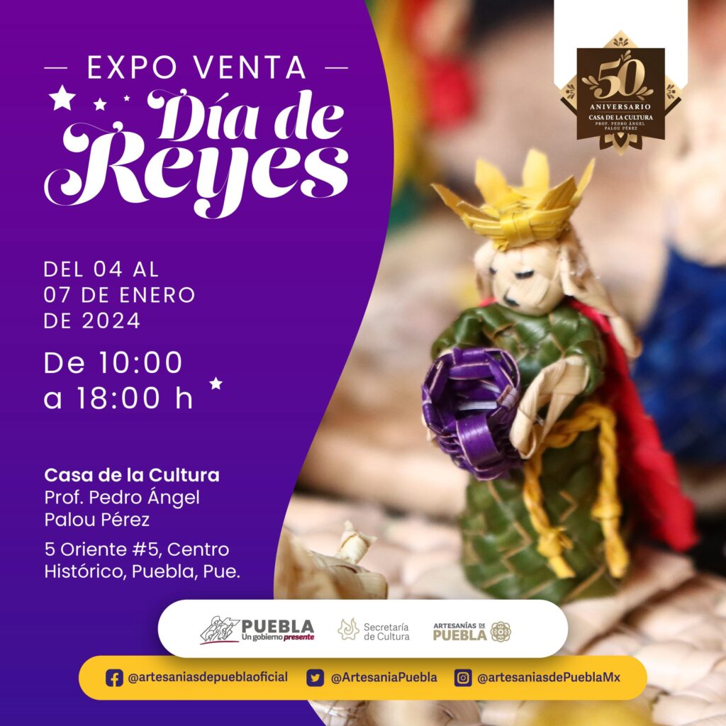 CIUDAD DE PUEBLA, Pue. – Por motivo del Día de Reyes (06 de enero), el gobierno presente de Sergió Salomón llevará a cabo diversas actividades entre las que se incluyen una expoventa artesanal, conciertos infantiles y una conferencia, que serán celebradas del 04 al 07 de enero en la Casa de la Cultura “Profesor Pedro Ángel Palou Pérez”.
