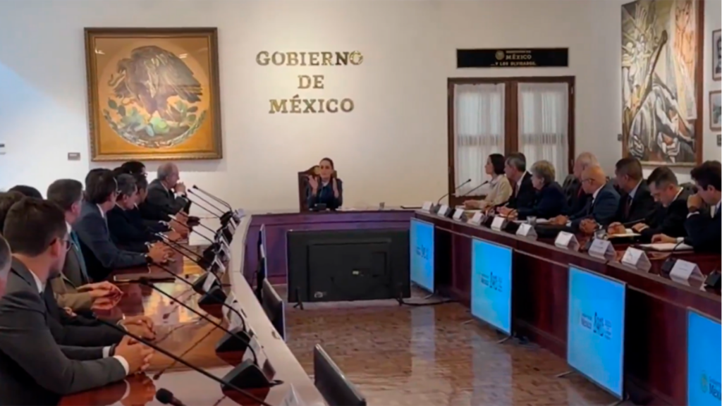 A través de su cuenta de la red social X, la mandataria federal compartió un breve video en el que muestra aspectos de su encuentro con empresarios, acompañada por la titular de la secretaría de Energía, Luz Elena González; la secretaria del Medio Ambiente y Recursos Naturales, Alicia Bárcena; el secretario de Hacienda y Crédito Público, Edgar Amador Zamora; y el director general de Pemex, Víctor Rodríguez Padilla.