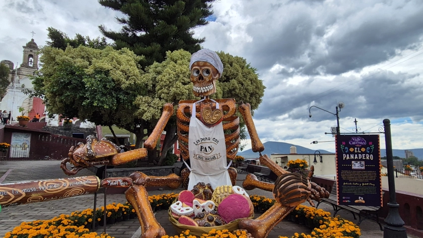 En el Valle de las Catrinas en Atlixco, el Día de Muertos cobra vida entre arte monumental, oficios tradicionales, flores, murales y sabor a pan de muerto.